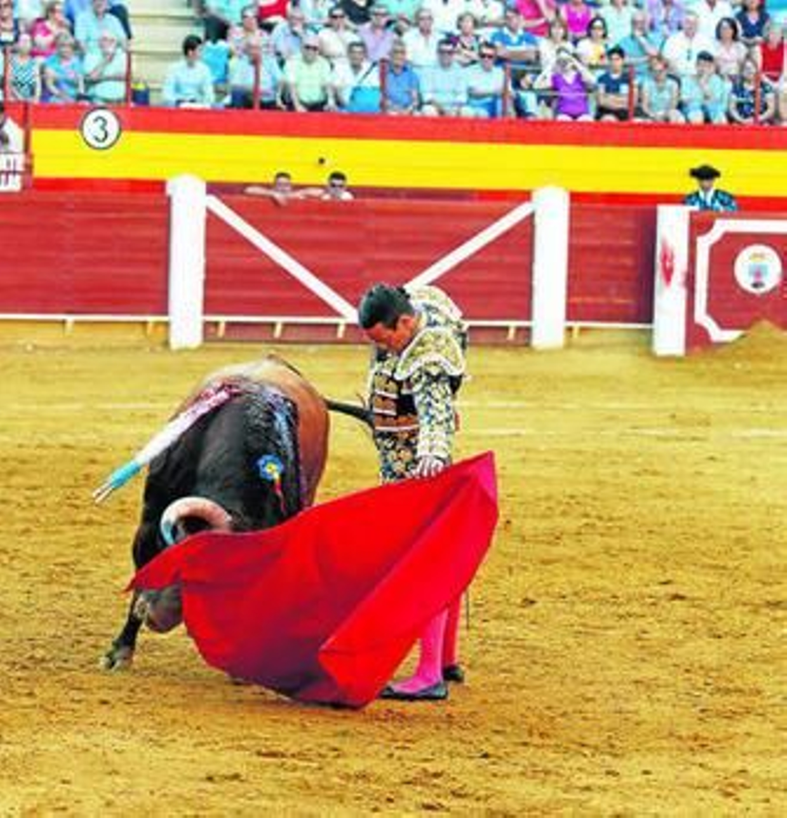 El joven diestro recibió a su astado con la elegancia que viene derrochando este año en todos sus compromisos con vistosos pases con el capote. Hizo el quite con tafalleras muy aplaudidas por el público almeriense.