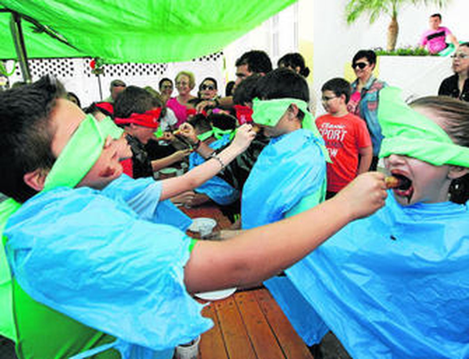 Mayores y niños celebraron ayer este juego a ciegas incluido en el programa de las fiestas que afrontan su recta final este miércoles