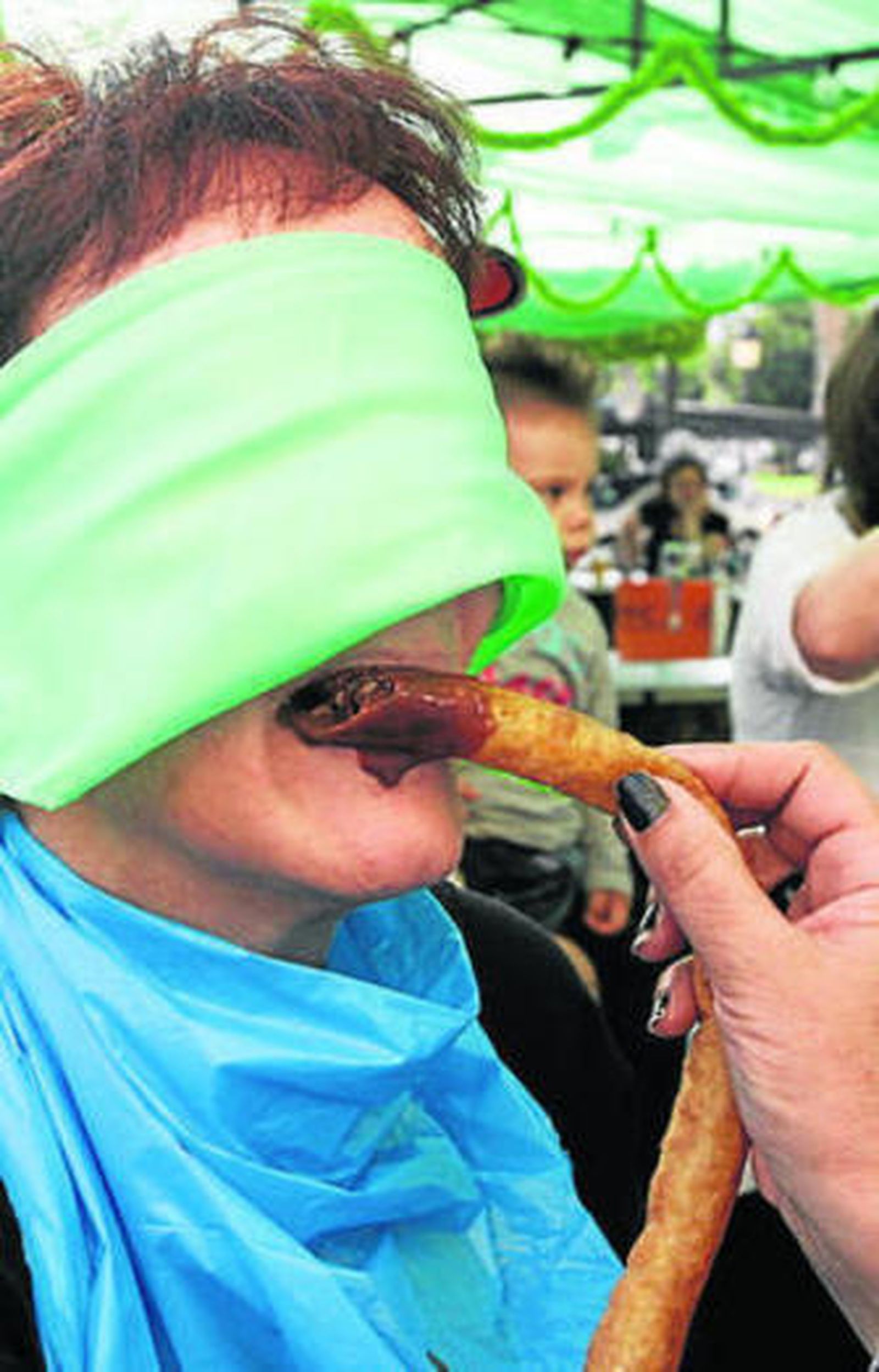 Los participantes en este simpático juego, que tuvo como escenario la plaza de la iglesia, demostraron su destreza para comer este dulce manjar con los ojos tapados. Es de imaginar que las risas de los presentes fueron y muchas, porque a más de uno les falló el acierto y el chocolate pringó sus caras.