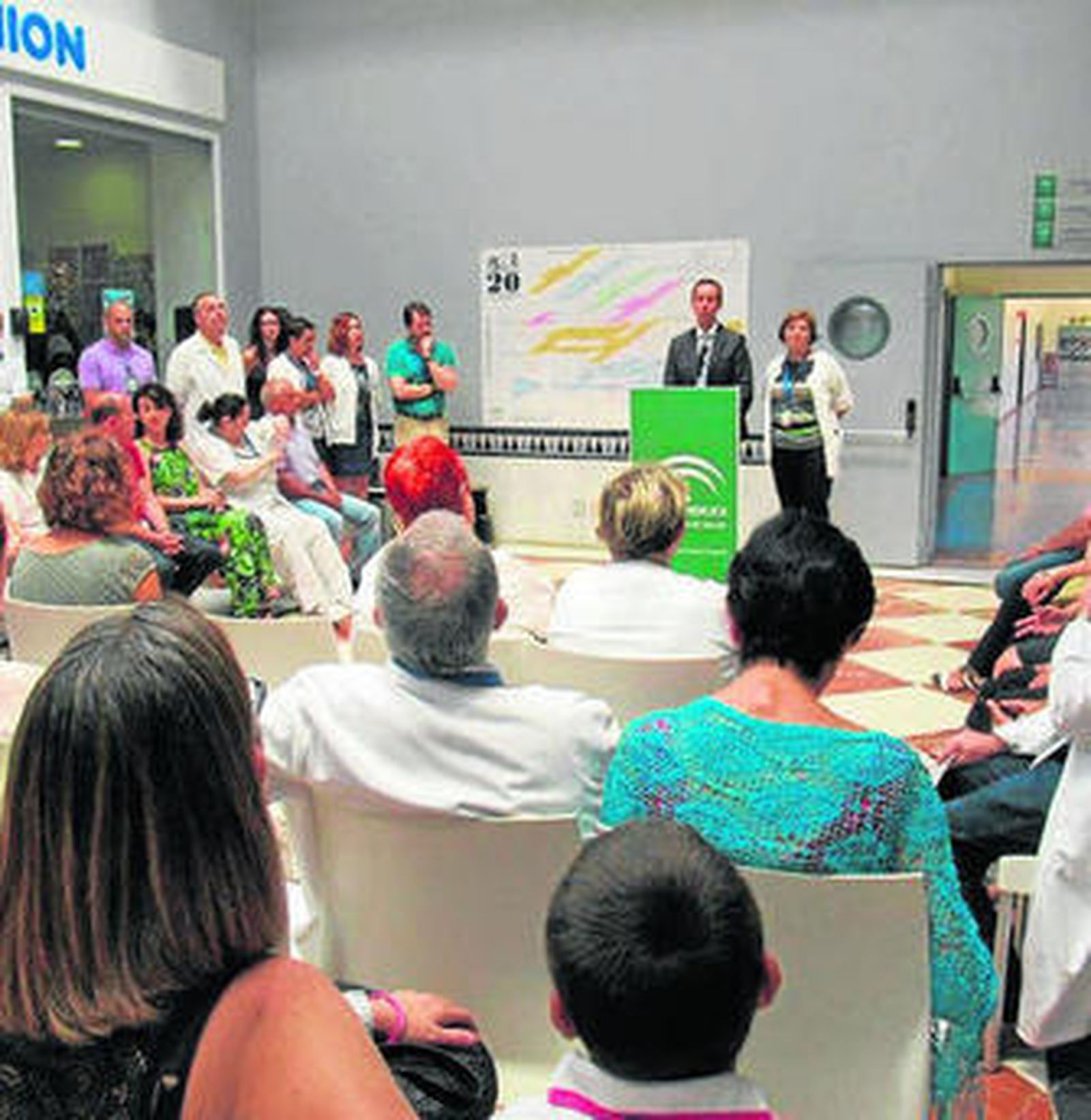 La jornada celebrada ayer contó con la presencia del delegado territorial de Igualdad, Salud y Políticas Sociales, José María Martín y la directora gerente de la Agencia Pública Sanitaria Poniente, Pilar Espejo. Ambos hicieron entrega de diplomas a los profesionales de cada categoría que llevan más tiempo trabajando en el hospital y participaron en la instalación de un mural en el que todos los trabajadores del centro podrán dejar su huella, firmar o escribir una dedicatoria.