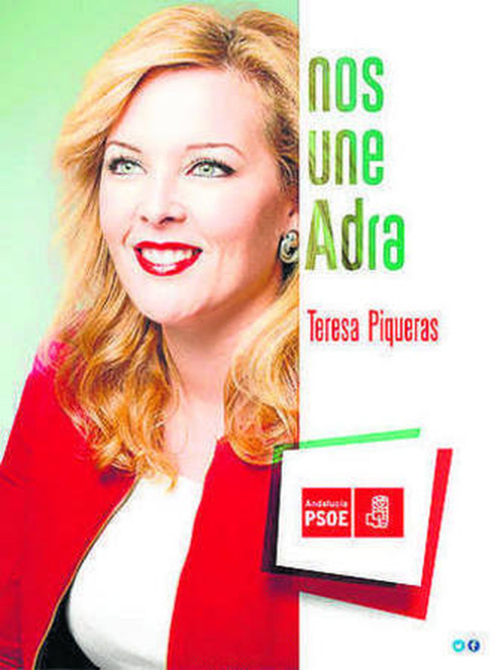 El PSOE de Adra ha puesto en marcha una campaña de conocimiento de la candidata socialista a la alcaldía, Teresa Piqueras. Una campaña que al Partido Popular de Adra "les ha debido de asustar, ya que han denunciado los carteles con la imagen de la candidata que se han distribuido por diferentes zonas del municipio". De esa denuncia ha tenido constancia el PSOE abderitano tras conocer la resolución de la Junta Electoral sobre la misma.