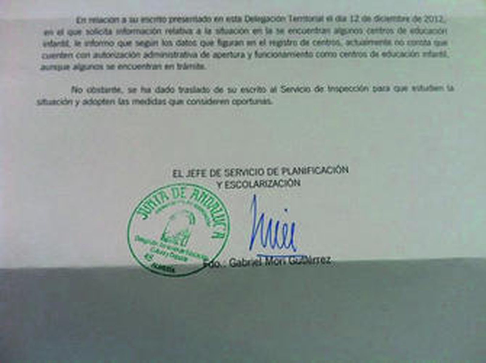 Diario de Almería ha tenido acceso tanto al escrito que presentó la familia como a la contestación de la administración, donde se reconoce que efectivamente ninguno de los cuatro centros que se publicitan como Centros de Educación Infantil tienen la correspondiente y obligatoria autorización para ejercer como tal. Ni aparecen en el listado de centros autorizados por la Junta en la página web de la Consejería de Educación, ni tampoco en el listado de centros autorizados que se publica en el BOJA o en el BOE.