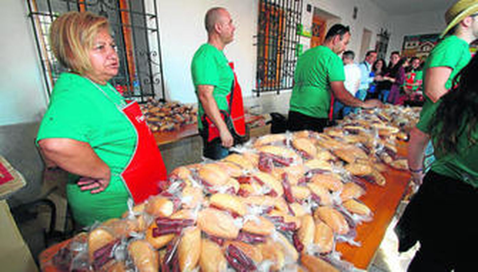 Para los viatoreños es uno de los eventos más esperados dentro de los festejos en honor a la Virgen de la Angustias y por ello no es de extrañar que cada año la Plaza de la Constitución se quede pequeña ante la masiva participación que tiene la Fiesta de la Longaniza. Un evento que permite a los asistentes degustar de un embutido propio de las matanzas y que, como ya es una tradición, el propio Ayuntamiento reparte de manera gratuita para agasajar a sus vecinos y también a los visitantes, pues esta fiesta atrae a muchas personas de la comarca y otros puntos de la provincia. Y ayer no fue una excepción. Multitud de vecinos y visitantes hacían cola desde bien temprano para recibir el pack que contenía dos generosas piezas de longaniza y un pan con el que acompañar a tan rico y castizo manjar. "Hemos repartido más de 4.000 bocadillos, 400 kilos de longanizas y más de 400 litros de cerveza, tinto de verano, gazpacho y refrescos", explica el regidor de Viator, Manuel Jesús Flores, que se ha mostrado muy satisfecho con la celebración de la fiesta y la participación "que ha sido masiva" y "no ha habido ningún incidente".