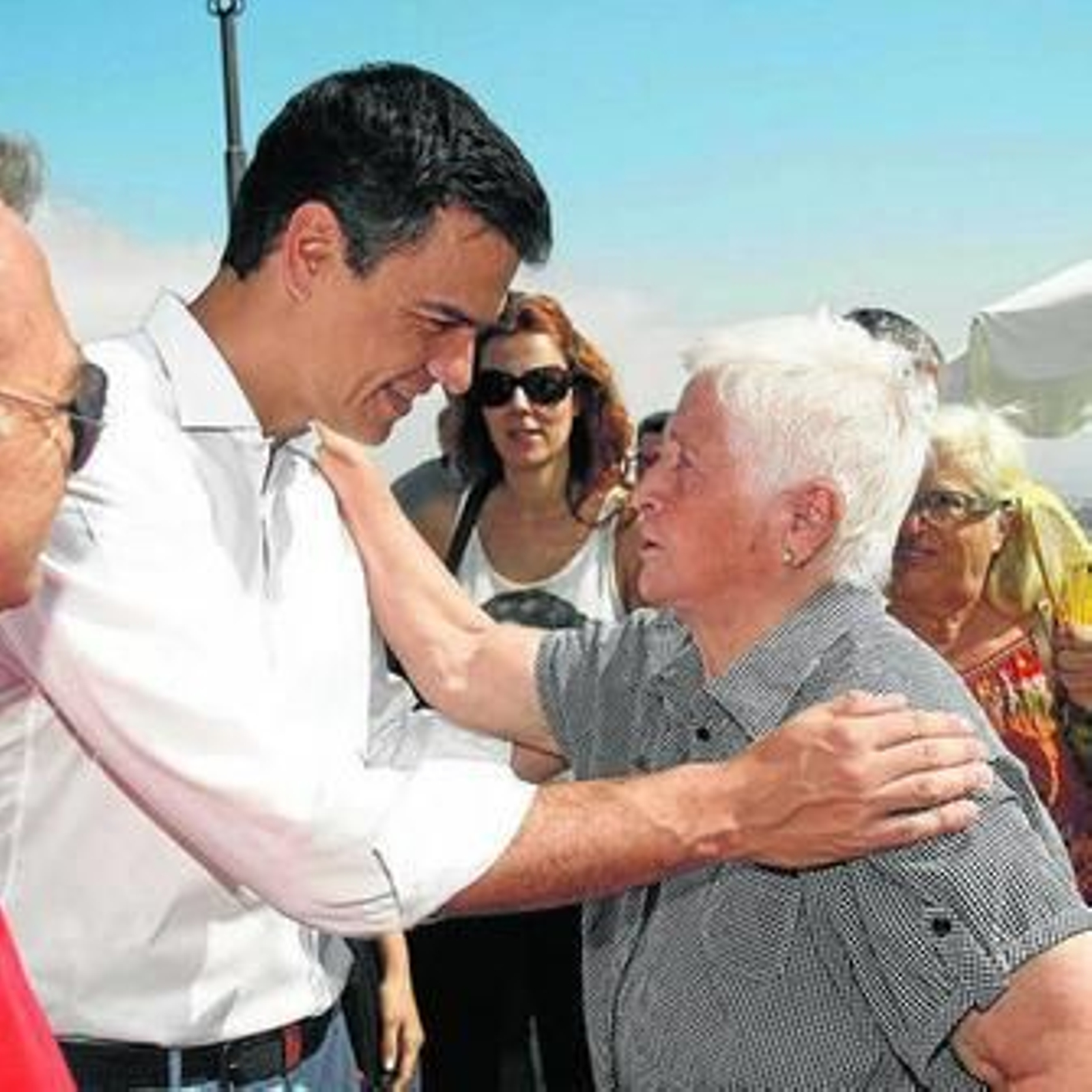 Miércoles. Día de mercadillo en Mojácar. Cita multitudinaria en la Plaza Nueva de la localidad con el recién alumbrado secretario general del PSOE, Pedro Sánchez, que tiene vivienda propia muy cerquita del punto de encuentro debido a que su mujer, Begoña Fernández, le habló en su día de un pueblecito blanco escalonado en la ladera de un monte con playas medio salvajes a un par de kilómetros. Sucumbió a la sugerencia, se prendó de los aires mojaqueros y desde hace unos años pasa sus días de vacaciones en este córner del Levante almeriense. Él, camisa blanca, pantalón azul, calzado deportivo elegante; ella, vestido largo veraniego de un favorecedor color azul y sandalias de tacón.