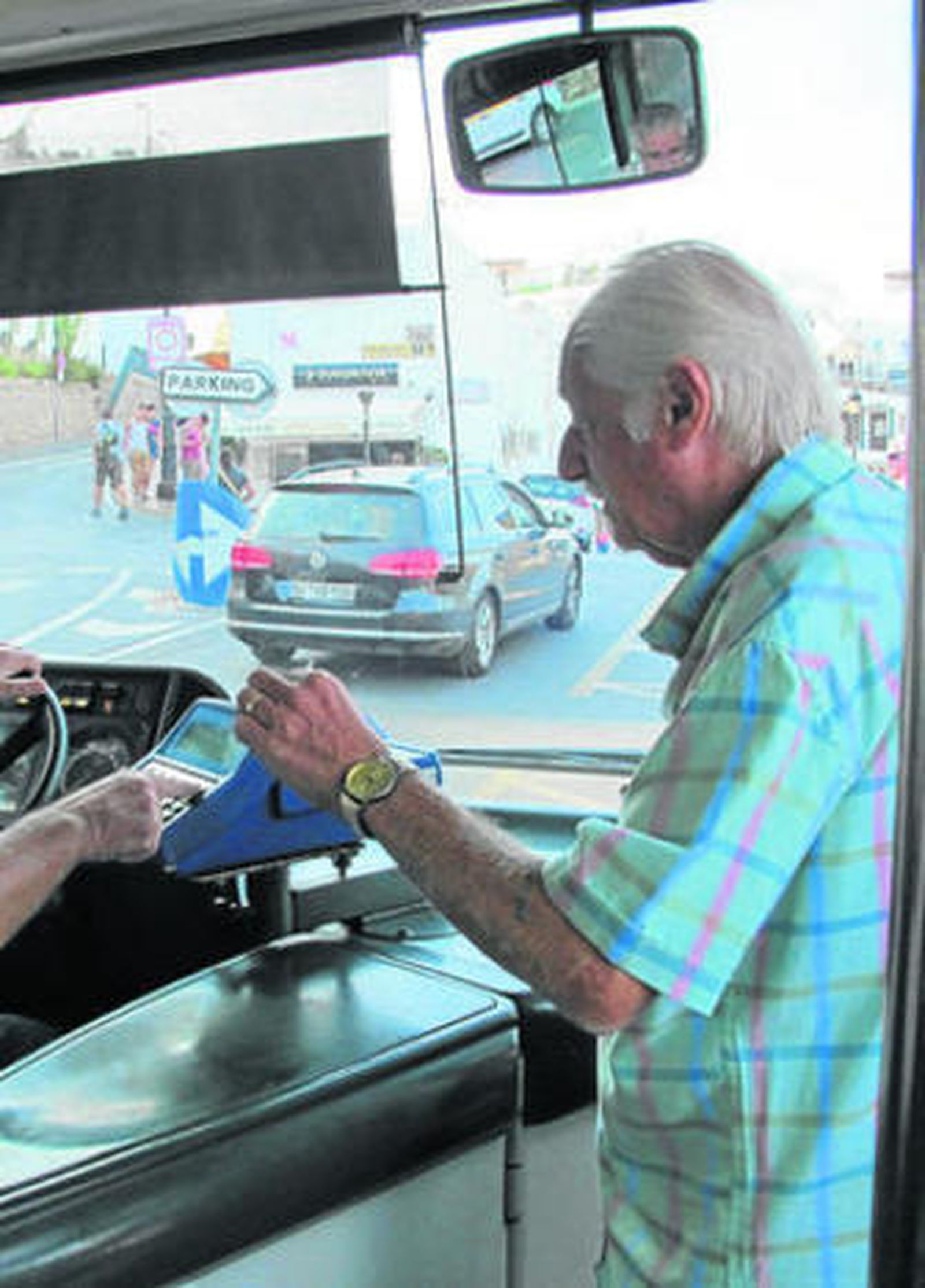 Hágame la caridad de contar qué hace con su tiempo, ahora que no está obligado a un horario laboral. "Tomar el sol, reunirnos con amigos, hacemos vida social intensa, viajamos a diferentes lugares de España para conocer el país, y aprender la gastronomía española que es muy buena". No es mala vida, no. "No crea", apostilla Malcom, "España es muy buen sitio si estás retirado y tienes una pensión, no es un buen lugar para trabajar, no hay trabajo. Vendrá gente a jubilarse pero no a trabajar. La gente joven tiene aquí un futuro difícil". El día de la charla, el mismo en que recibió la tarjeta bus urbano gratis, Malcom estaba impaciente por utilizarla, "la he recibido con mucha satisfacción y deseo usarla cuanto antes". Contaba el matrimonio que suben frecuentemente de la playa al pueblo de Mojácar, que el ahorro de la tarjeta es el importe de un café. Y una vez pegada la hebra, la conversación tomaba otros cerros de Úbeda. En la parada del autobús municipal urbano de Mojácar, un grupo de personas tarjeta en mano esperaba la llegada del bus.