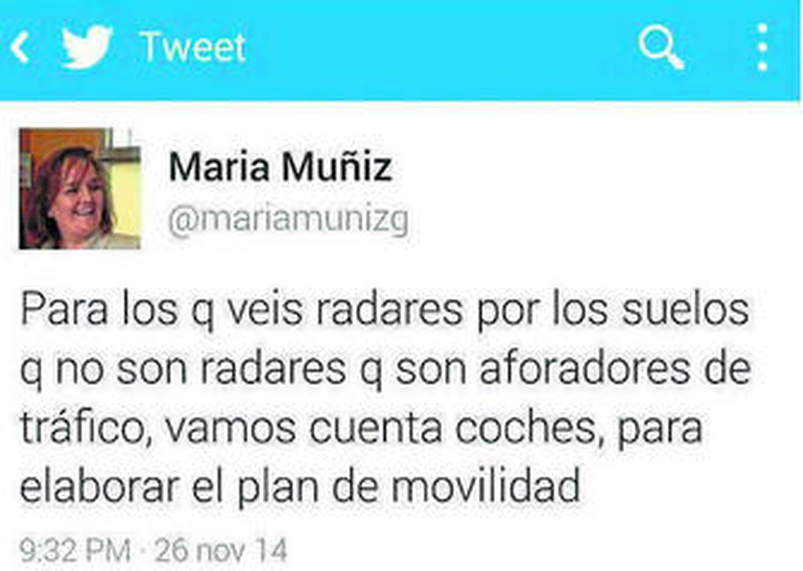 Saltó la alarma entre los conductores almerienses que rápidamente abordaron las redes sociales, como Facebook y Twitter, con la advertencia de la instalación de múltiples supuestos radares en el suelo. Pese a la extrañeza de estos dispositivos (con poca posibilidad de captar fotográficamente las matrículas desde el pavimento), la noticia circuló la tarde de miércoles como la pólvora, también a través del whatsapp. El revuelo lo atajó la concejal tuitera María Muñiz, responsable del área de Movilidad y Seguridad. "Para los que veáis radares por los suelos, que no son radares, que son aforadores de tráfico, vamos, cuenta coches, del Plan de Movilidad".