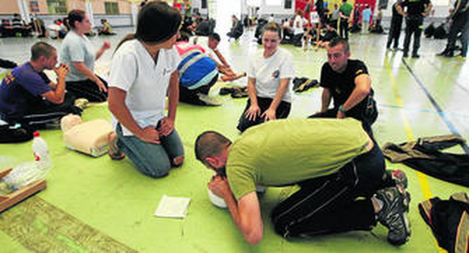La Consejería de Igualdad, Salud y Políticas Sociales, a través de la Empresa Pública de Emergencias Sanitarias 061, organizó ayer una jornada de formación masiva para entrenar en técnicas de soporte vital básico a mil militares, en su mayoría legionarios, destinados de la Base Militar Álvarez de Sotomayor, en la localidad de Viator. Estas jornadas tienen como objetivo formar en las maniobras de Reanimación Cardiopulmonar Básica a este colectivo, que podrá aplicarlas en caso de que fuera necesario en sus misiones de paz o militares para ayudar a salvar vidas. Es la quinta jornada dirigida a estos profesionales desde el año 2009, siendo ya 5.000 los militares que cuentan con los conocimientos necesarios para aplicar las maniobras de reanimación cardiopulmonar y mejorar así la atención inicial de los afectados por una parada cardiorrespiratoria, ayudando a reducir secuelas graves e iniciando las técnicas básicas mientras llegan los equipos de emergencias sanitarias. Durante seis horas, un total de 40 monitores han entrenado por grupos a un millar de profesionales del ejército en el pabellón de deportes de la base militar.