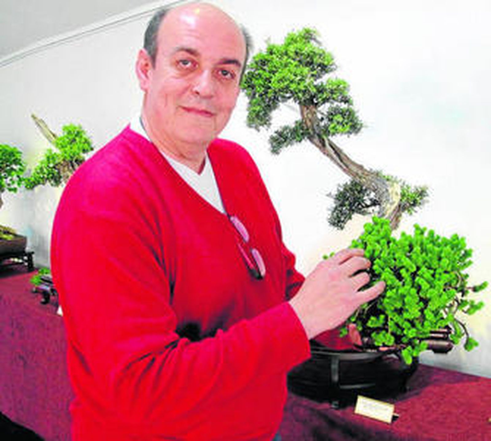 Treinta y dos plantas bonsái tiene en su casa Juan Antonio, "apelotonadas en estanterías porque, salvo excepciones, los aficionados al bonsái casi todos somos pobres, hay muy poco rico con este hobby". Treinta y dos plantas precisan de una dedicación que en el caso de Juan Antonio Molina se traduce en un par de horas "porque todos los días hay que regarlas, observar si tienen alguna deficiencia o te están diciendo que necesitan algo".