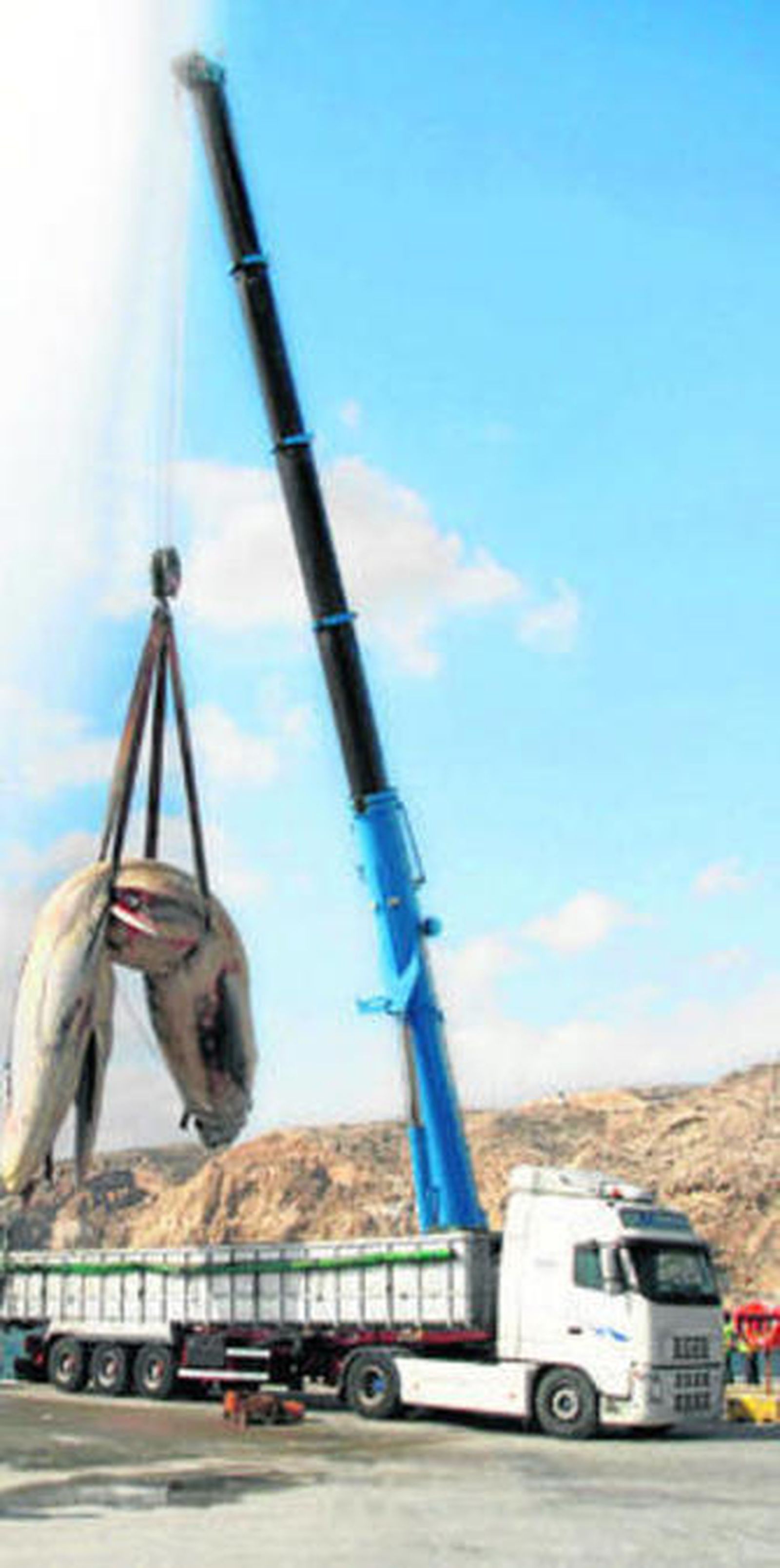 Para el traslado del cetáceo desde el muelle de Pechina fue necesaria una grúa de gran tonelaje