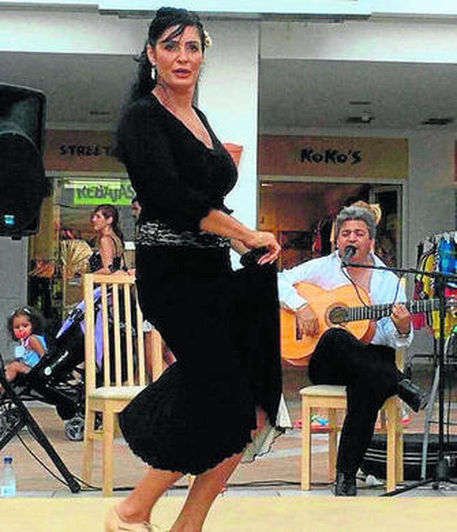 El sol de noviembre dominaba la tarde; al apagarse, brillaron los dos faroles negros con los que Francesca acompaña la charla. Le sale el fuego interior que le alegró la vida un buen día que la casualidad quiso traerla a Mojácar ya va para ocho años. En la espera de que su hija terminara la clase de piano, Francesca oyó punta-tacón, tacón-punta, "abrí un poquito la puerta por curiosidad, el profesor me dijo que podía pasar, vi que bailaban y decidí probar". Y se perdió, se le metió el baile flamenco en vena.