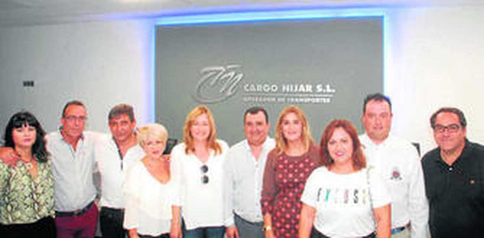 La alcaldesa de Níjar, Esperanza Pérez, y el concejal de Agricultura, Manuel Moreno, han acudido esta mañana a la inauguración de la empresa Cargo Níjar, cuya sede se ubica en la ciudad del transporte. Juan Espinosa, Manuel Espinosa, Antonio Lorenzo y Casimiro Fuentes son los socios de esta iniciativa empresarial, que junto a sus mujeres, María Elena Martos, Carmen Vivo, Josefina Egea y Dolores Rosa Márquez, han hecho realidad este proyecto.