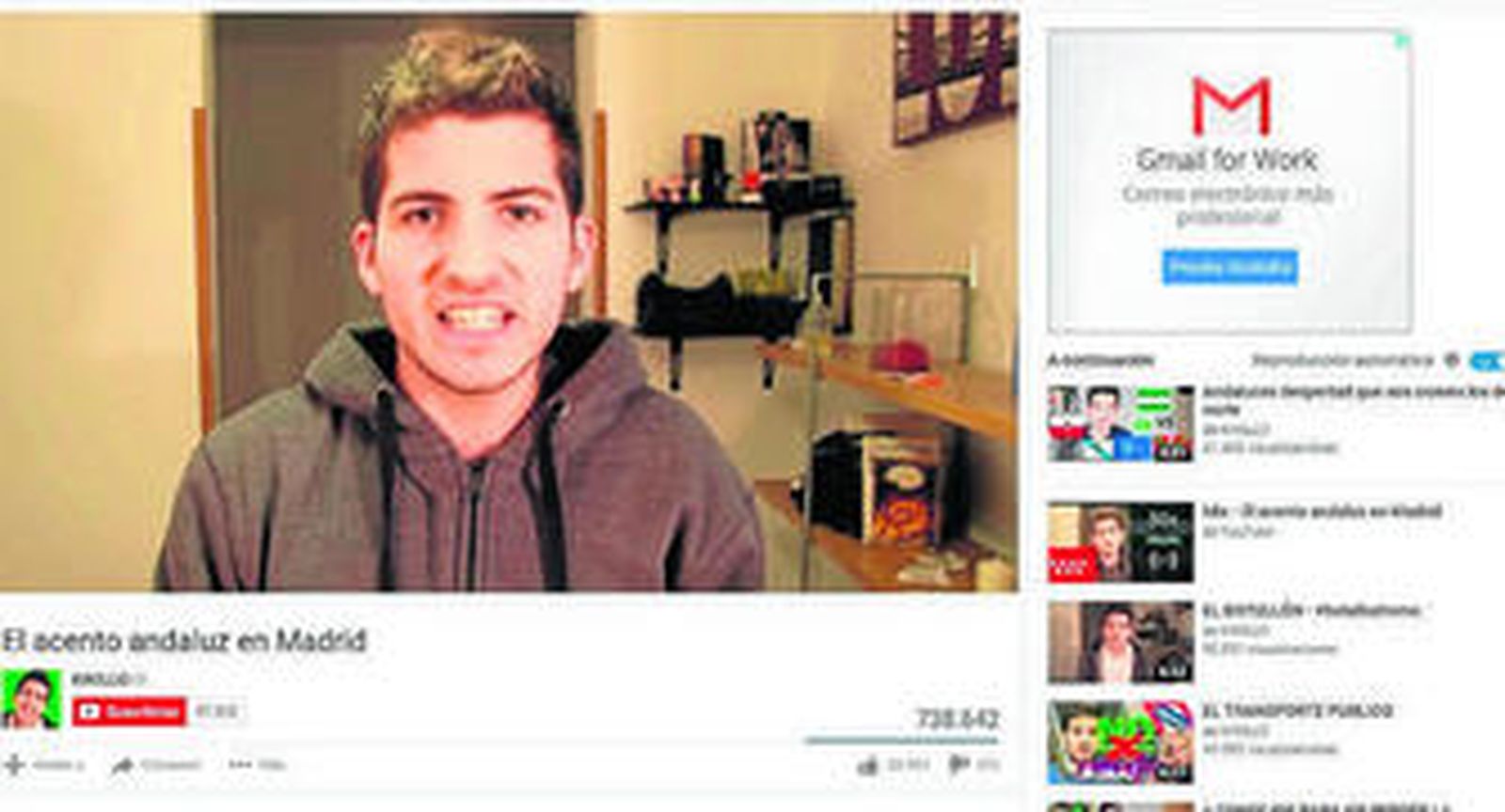 Seis de septiembre de 2010. 'Estudiar aburre si no sabes como hacerlo'. No es el título de una película ni de la más remota serie de televisión estadounidense, no. Se trata del primer vídeo subido a la red Youtube por el almeriense Francisco García Ramírez 'Kiko'. Más de un lustro ha pasado desde aquel primer videoblog que, hasta la fecha, ha alcanzado casi 50.000 visualizaciones. Desde entonces, este estudiante de Comunicación Audiovisual en la Universidad Complutense de Madrid no ha cesado de subir vídeos a la red. La cifra asciende ya a casi cien videoblogs durante estos cinco años de vida. El 'boom' le llegó un 21 de octubre de 2013. El videoblog 'El acento andaluz en Madrid' se hizo viral en Internet, especialmente a través de las Redes Sociales. Hasta el día, la grabación ha alcanzado casi las 800.000 visitas y los 4.000 comentarios. El resto de vídeos populares rozan la cifra de las 150.000 visitas, más que considerable para la cantidad de videoblogs que existen en la actualidad en Youtube.
