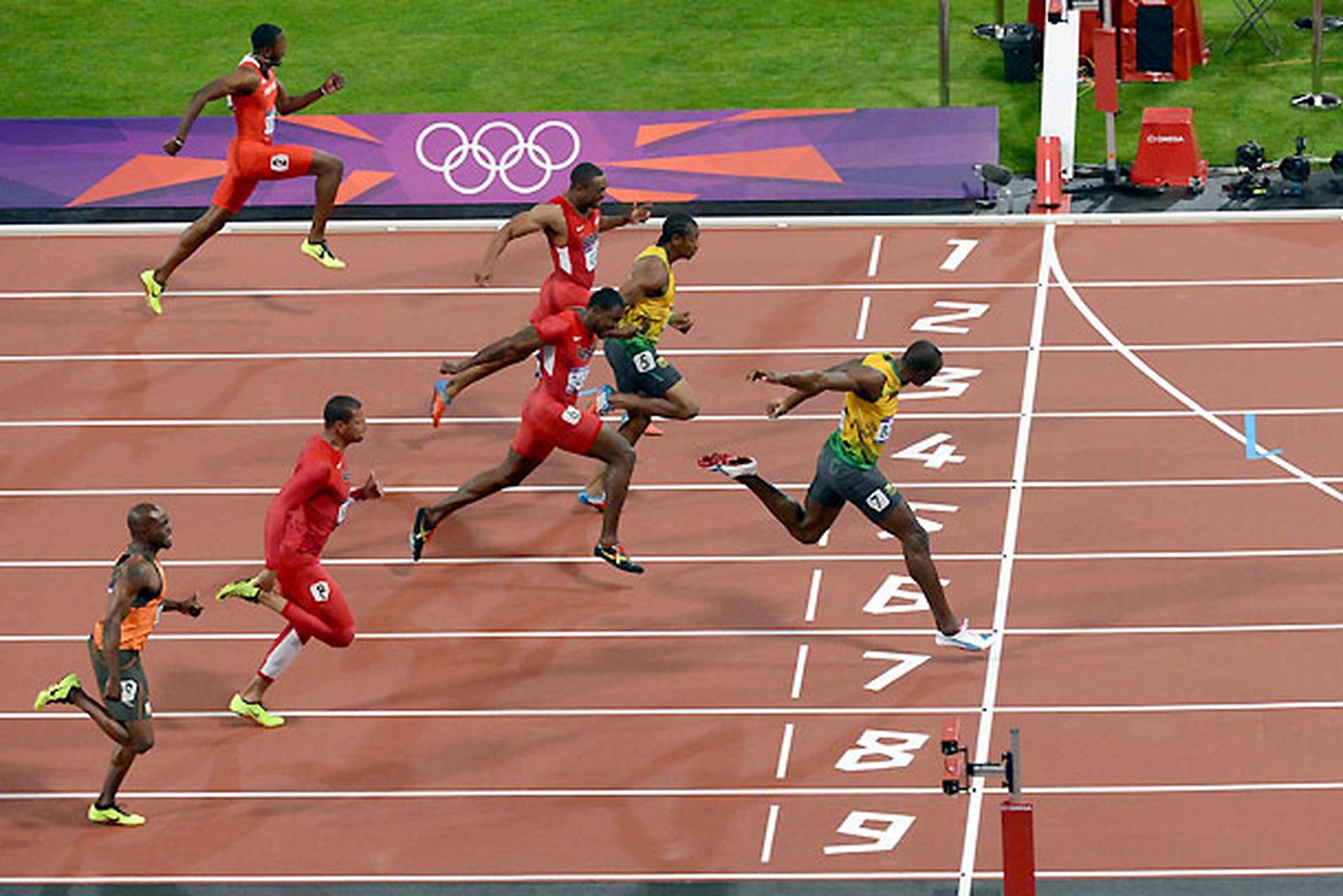 Únicamente su récord mundial de 9,58 segundos, logrado en Berlín en 2009, está por encima en las listas de registros históricos del crono logrado por el relámpago en el estadio olímpico de Londres. Sólo el estadounidense Carl Lewis (en 1984 y 1988) logró encadenar dos oros olímpicos en la prueba reina de la velocidad, aunque el norteamericano lo hizo sólo por la descalificación en Seúl por doping del canadiense Ben Johnson, que cruzó primero la meta.
