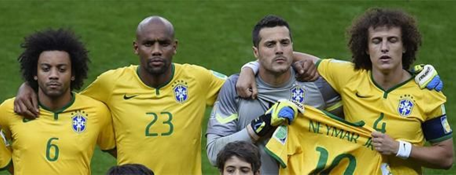 El defensa David Luiz y el meta Julio César portaron la camiseta con el diez de Neymar durante la emisión del himno de Brasil antes del choque de las semifinales contra Alemania. Los jugadores pretendieron mantener presente al astro brasileño, lesionado en el partido contra Colombia.