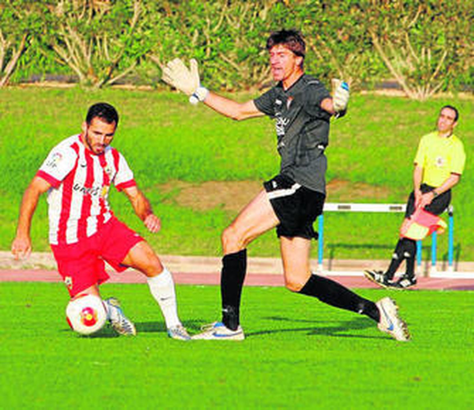 La UD Almería B buscará esta noche en el Ramón de Carranza aprovechar la inercia positiva que arrastra desde el domingo, después de lograr su primera victoria liguera como local ante el San Fernando (2-1), para encadenar un nuevo triunfo que le haga despegar desde la zona baja de la tabla clasificatoria y empezar a navegar fuera de las plazas de descenso, en las que lleva inmerso prácticamente desde que comenzó la campaña. Moral no le falta al equipo rojiblanco, sobre todo después de haberse despojado de la presión de sumar el primer triunfo ante su afición. Pero además del buen estado de ánimo que se palpa, el filial puede enconrar más apoyo moral en el historial de partidos que ha jugado en el feudo cadista. De las tres visitas que el Almería B ha hecho al Carranza, solamente ha perdido en una ocasión, en la 2011-2012 por 6-1, mientras que en la 2010-2011 sacó un punto (1-1) y el pasado curso se llevó los tres de tierras gaditanas tras imponerse por 1-2, con goles de Edgar y Míchel, dos jugadores que hoy no estarán. El primero porque ya no pertenece a la disciplina rojiblanca y el segundo porque sigue de baja.