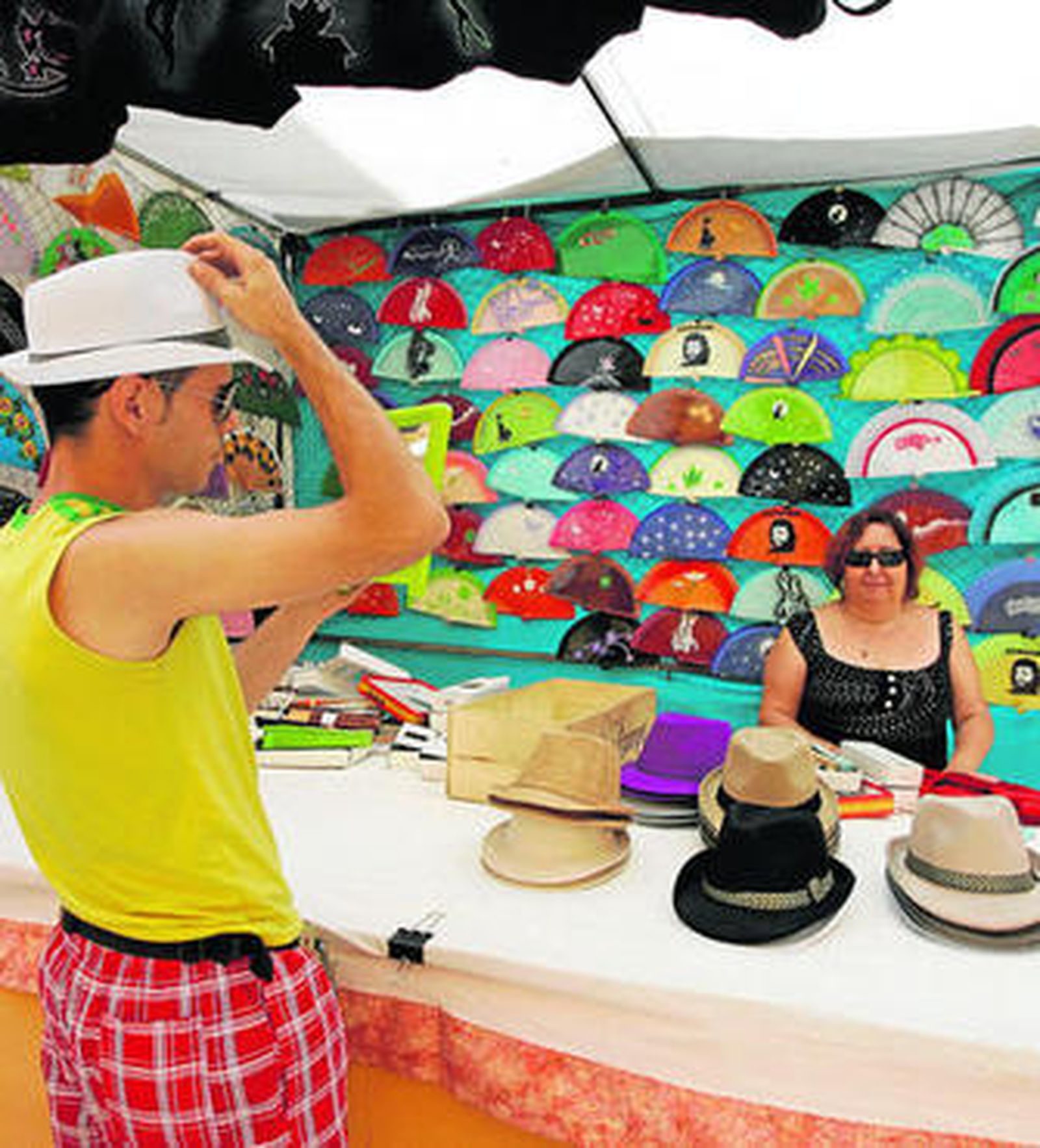 UNA seña de identidad de la Feria del centro de la capital es la presencia de vendedores ambulantes que ofrecen un sinfín de artilugios como luminosos, pero que también venden sombreros, gafas... complementos que adornan con el paso de las horas el uniforme oficial elegido para disfrutar de la Feria del Mediodía. Junto a los vendedores también se suceden algunos puestos de venta que se distribuyen a lo largo del Paseo de Almería y sus proximidades. Todos ofrecen una gran variedad de artículos que visten al visitante de pies a cabeza y son los que después formarán parte de los `souvenirs' de esta Feria.