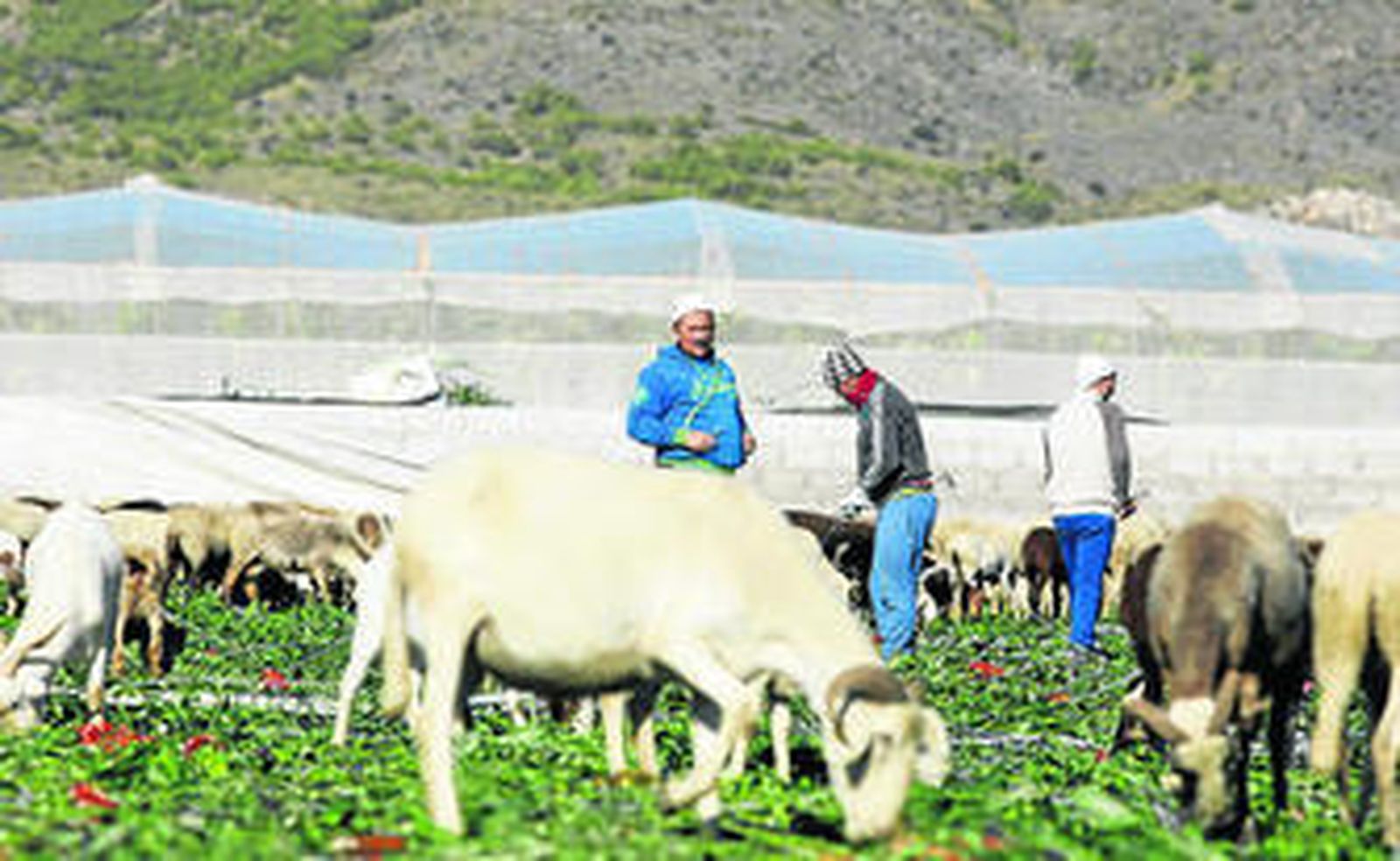 La introducción de ovejas y cabras en invernaderos afectados por el granizo permite a los agricultores ahorrar en transporte de restos vegetales Esta práctica se hace entre cada ciclo