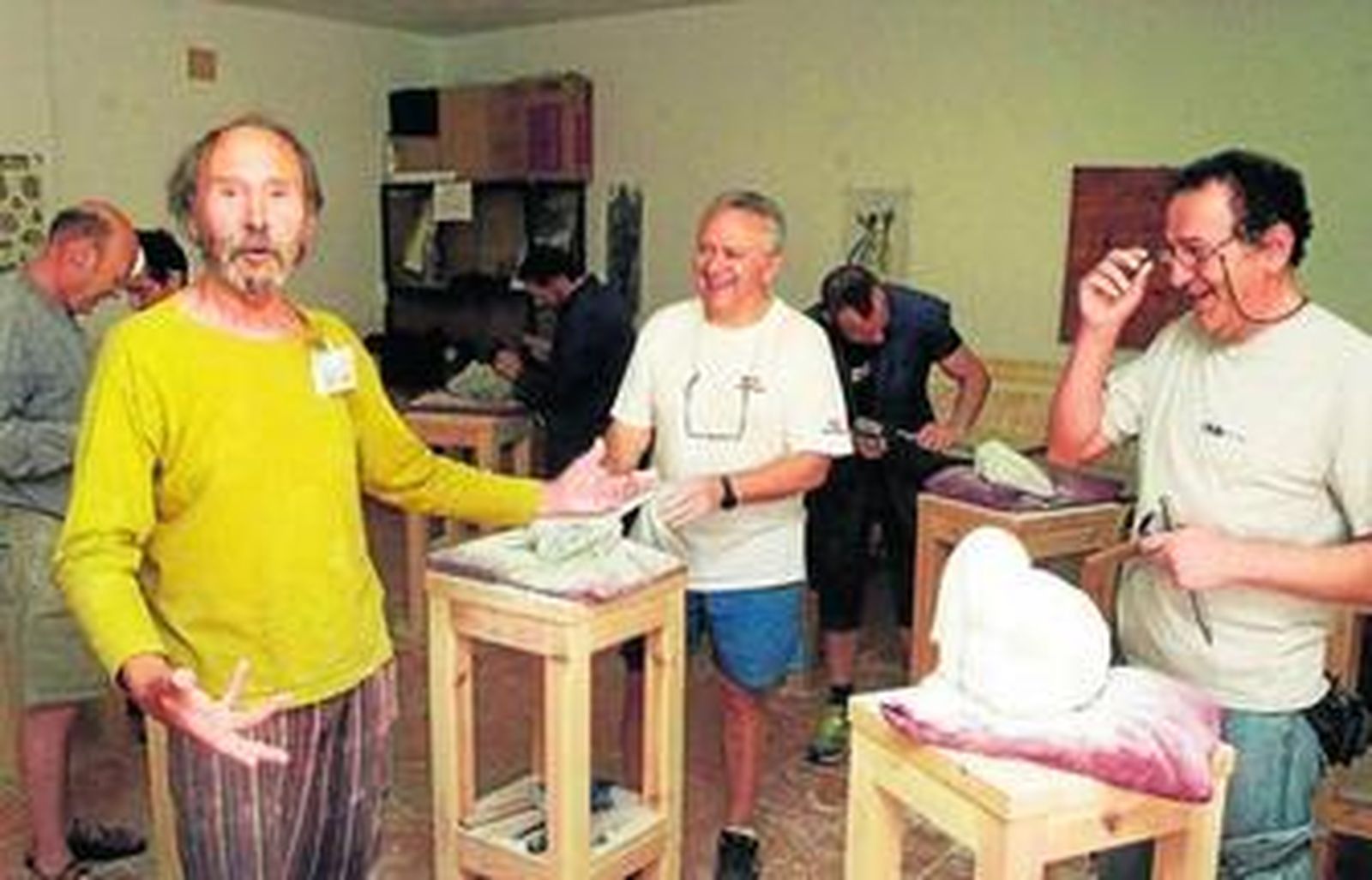 Antonio F. explica que "ya que estamos aquí, estamos aprendiendo cosas muy interesantes. Estoy muy contento de haber conocido a Don Francisco, que es un buen señor y un buen maestro". Francisco Wuytack que apunta que "el arte es una terapia de sentimientos y emociones" subraya que "excepto uno, el resto no había trabajado nunca con la piedra. En pocas sesiones han aprendido la técnica y estoy muy contento con el trabajo que están realizando".