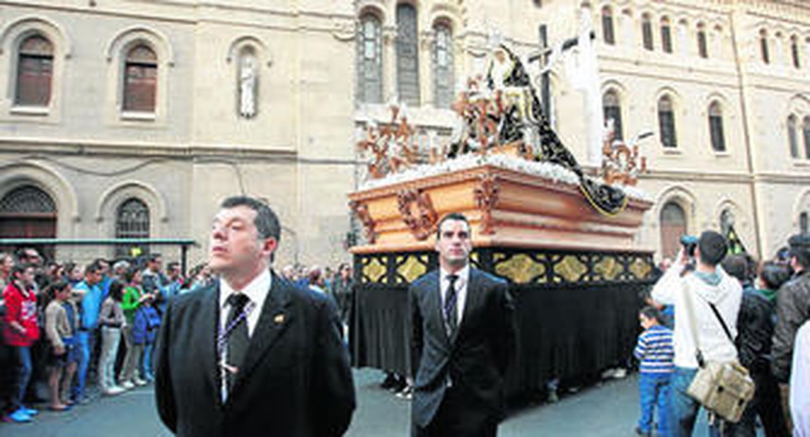 A las siete y cuarto en punto de la tarde, quince minutos antes de lo habitual, la Hermandad de las Angustias puso su Cruz de guía de plata en la puerta de la Capilla del Colegio Compañía de María.